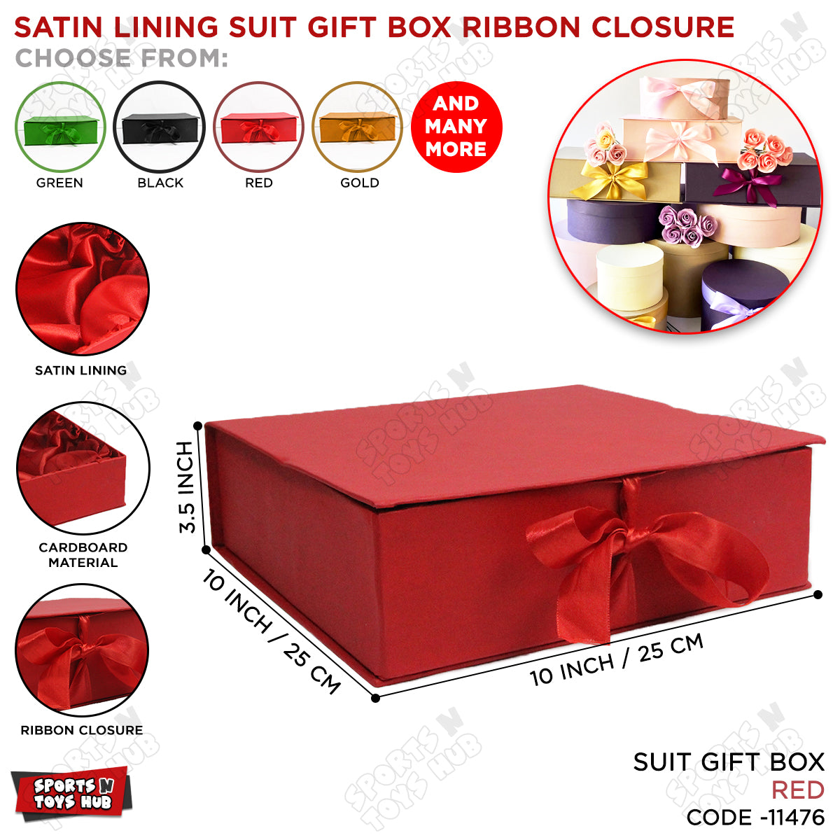 Satin Lining Suit Gift Box Ribbon Closure - 10 x 10 x 3.5 Inches