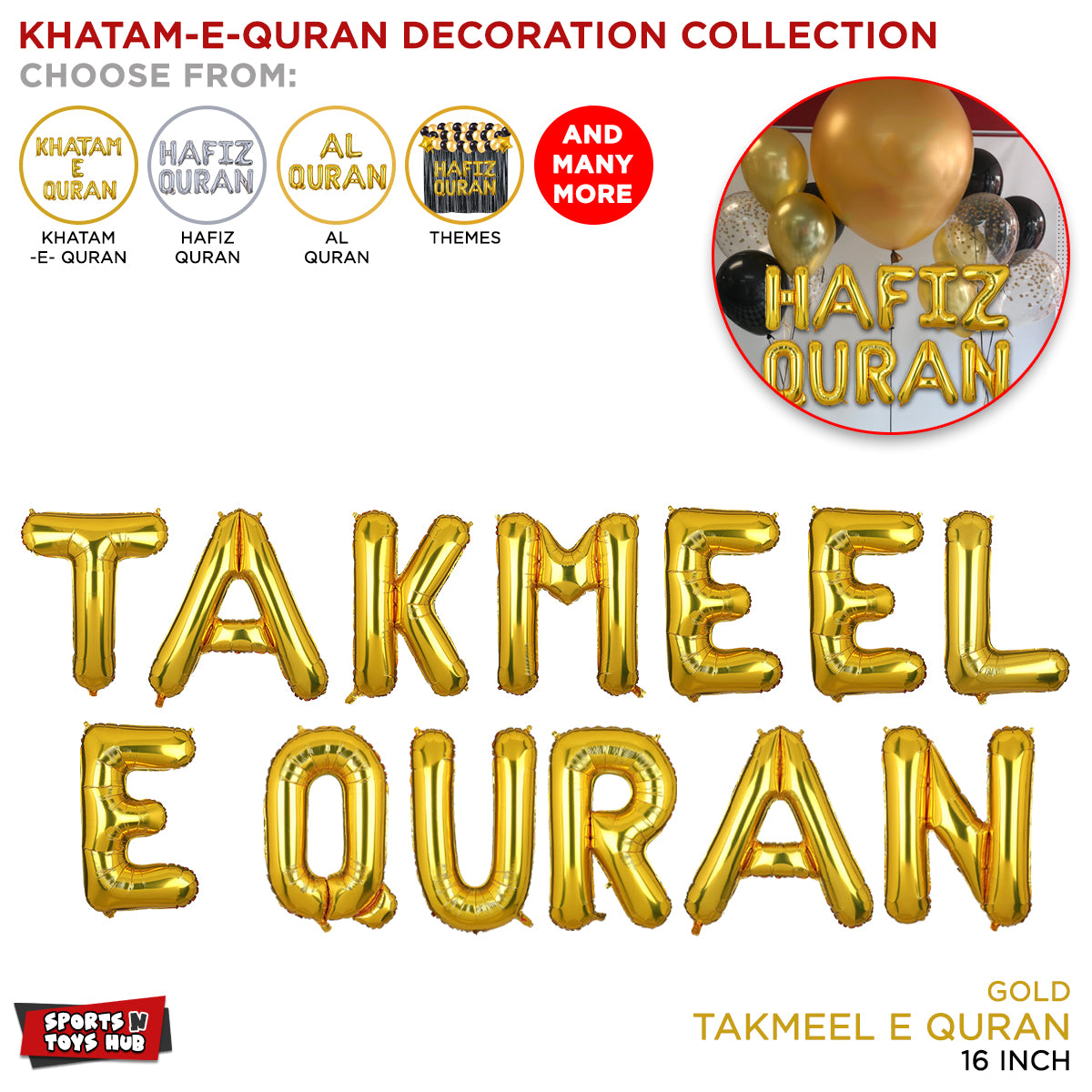 # Takmeel-e-Quran Foil Letter Collection Honor the completion of Quranic recitation with this specialized foil letter collection, engineered for Takmeel-e-Quran ceremonies and religious observances. Featuring a brilliant foil coating that projects elegance and reverence, each letter delivers visual impact suitable for formal gatherings and intimate family celebrations alike. This curated set accommodates diverse event scales—from intimate home ceremonies to larger community functions—with letters that maintain their reflective quality and structural integrity over time. The premium foil construction resists environmental wear, ensuring your decorations remain pristine throughout multi-day celebrations. Ideal for creating statement backdrops, entrance displays, or thematic installations that authentically reflect the spiritual significance of this milestone. A refined choice for those prioritizing quality craftsmanship and culturally appropriate décor that celebrates Quranic achievement with dignity and sophistication.