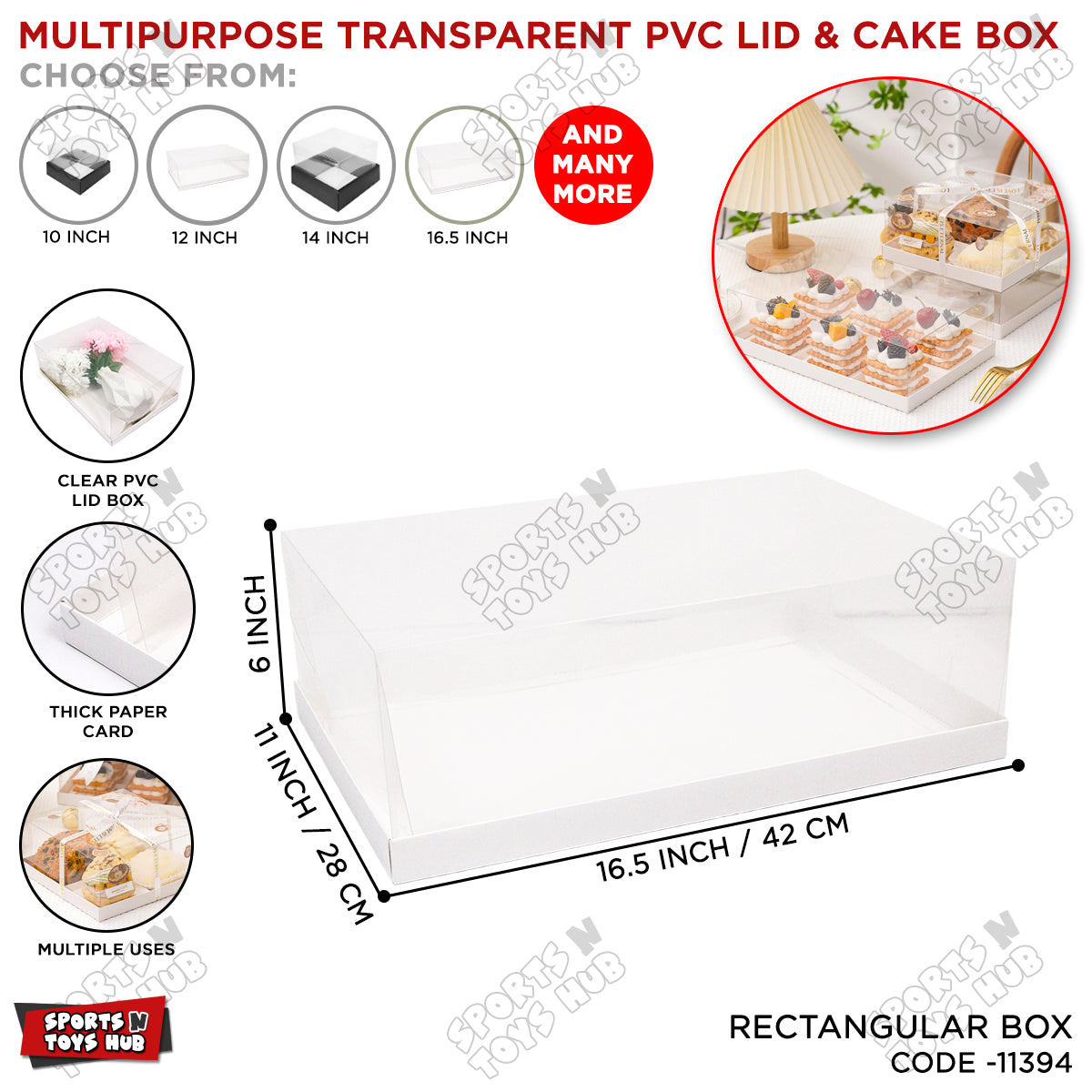 - Showcase your treats in style with our Multipurpose Transparent PVC Lid & Cake Box – perfect for elegant presentation and secure packaging.