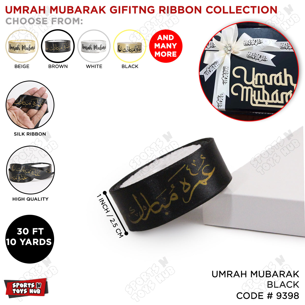 Umrah Mubarak Urdu Text Printed Satin Ribbons – 1 inch x 9 yards