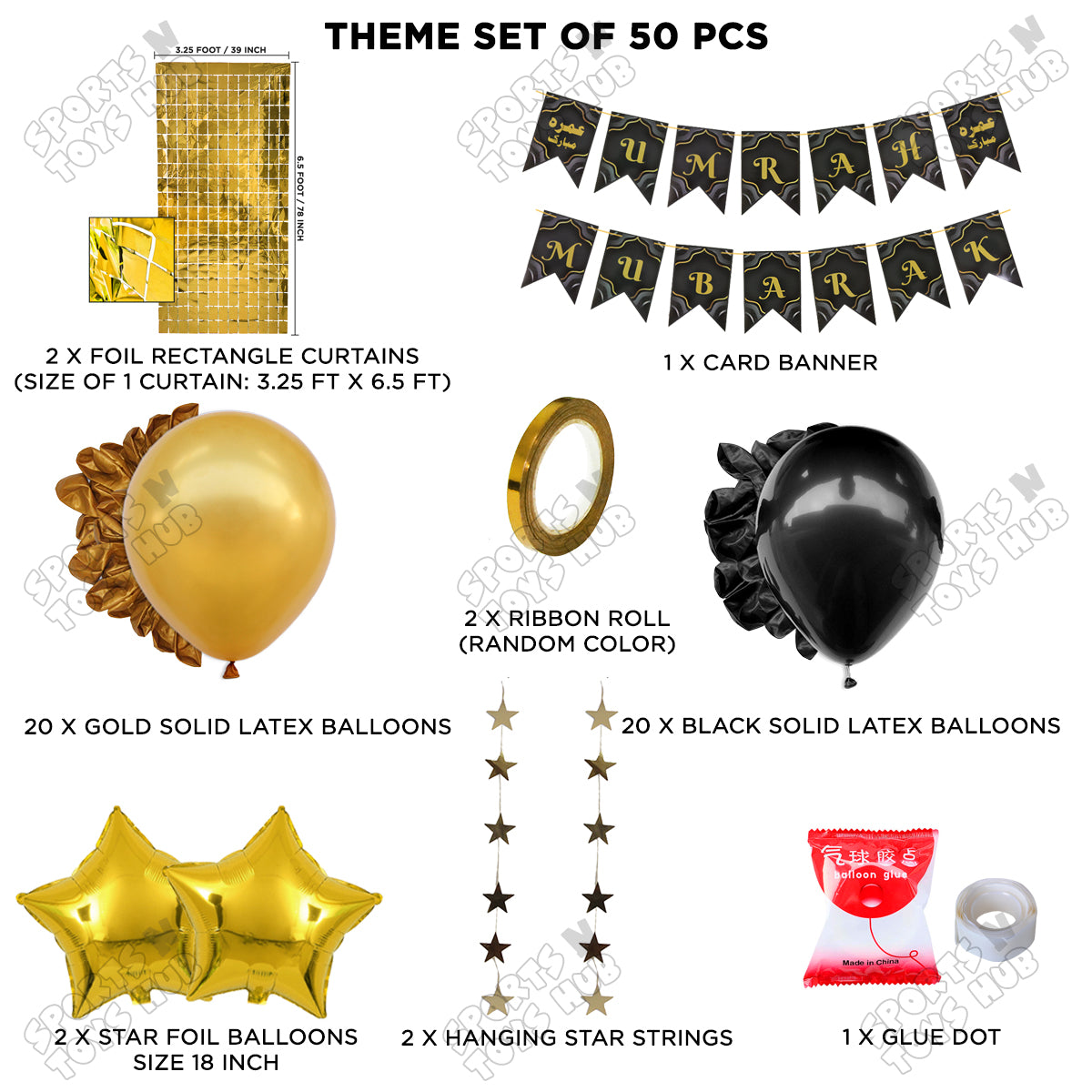 Our distinguished Umrah Mubarak Black Card Banner Theme Collection features sophisticated Urdu calligraphy against an elegant black background. These premium banners combine traditional Islamic artistry with contemporary design elements, creating a dignified aesthetic perfect for honoring this sacred pilgrimage. The striking contrast between the text and background ensures visibility while maintaining a refined appearance, ideal for reception decorations or commemorative displays for returning pilgrims.